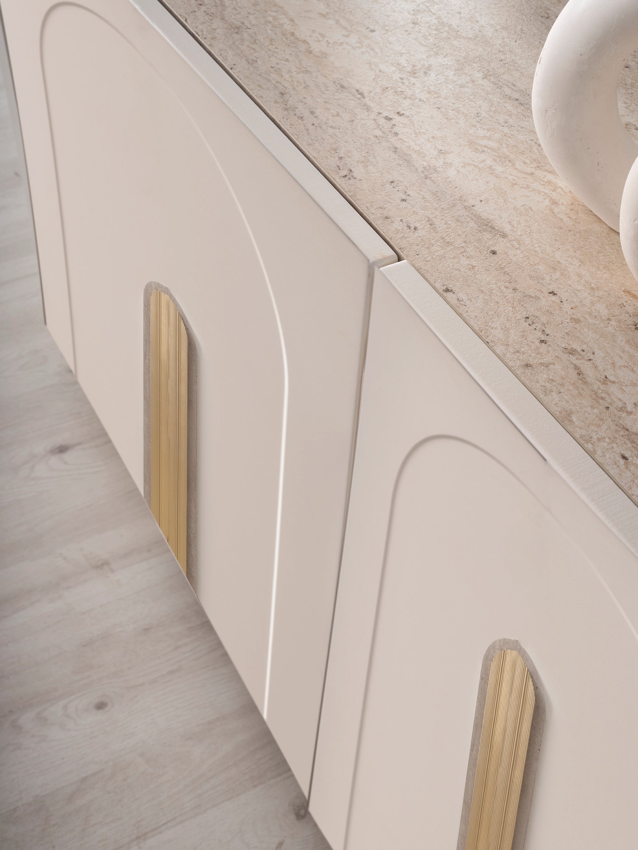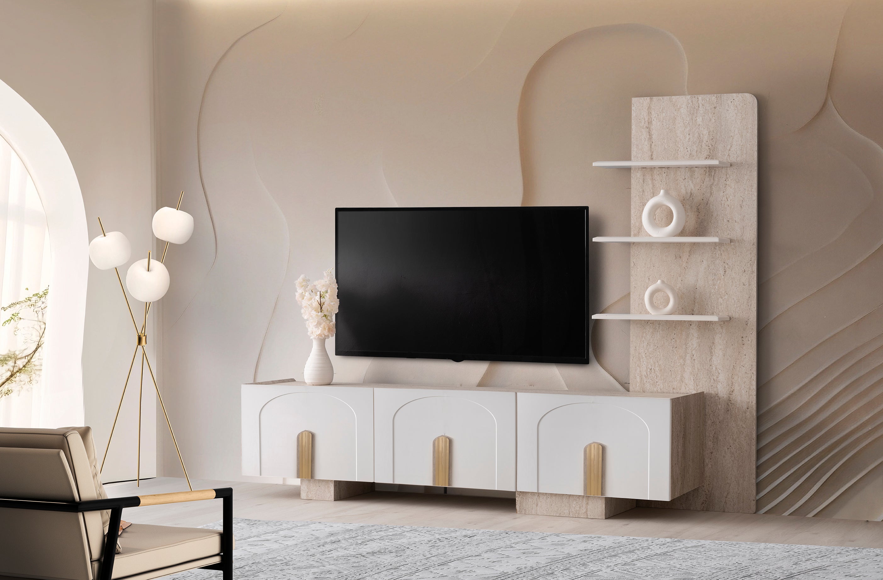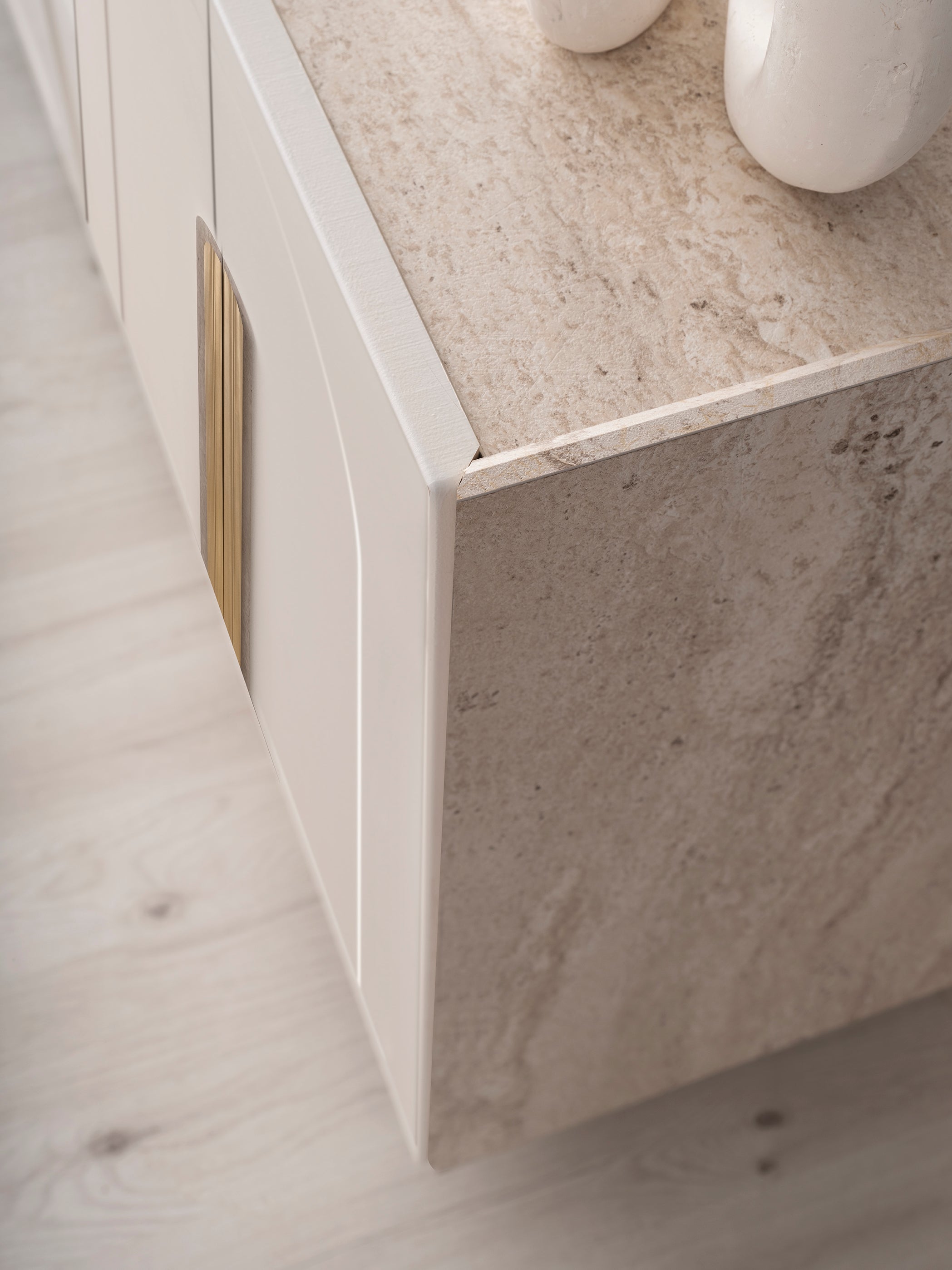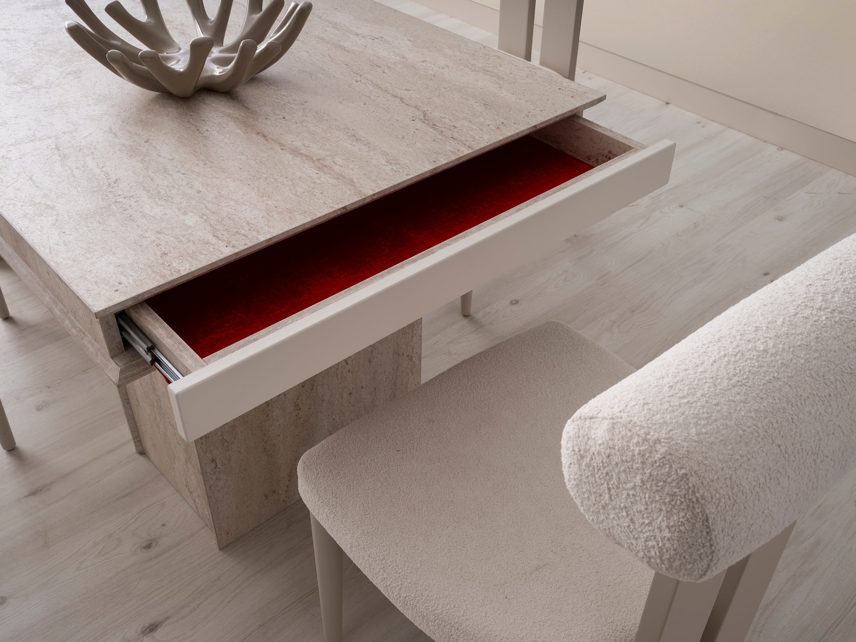 Преобразете вашата трапезария в галерия на модерното изкуство с трапезен комплект "Визон". Вдъхновен от органичните форми в природата и топлината на травертиновия камък, този комплект съчетава смел, скулптурен дизайн с изключителна функционалност. Всеки елемент е проектиран, за да внесе усещане за лукс и хармония във вашия интериор. "Визон" не е просто обзавеждане, а изявление – перфектният център за вашите специални вечери и незабравими спомени.