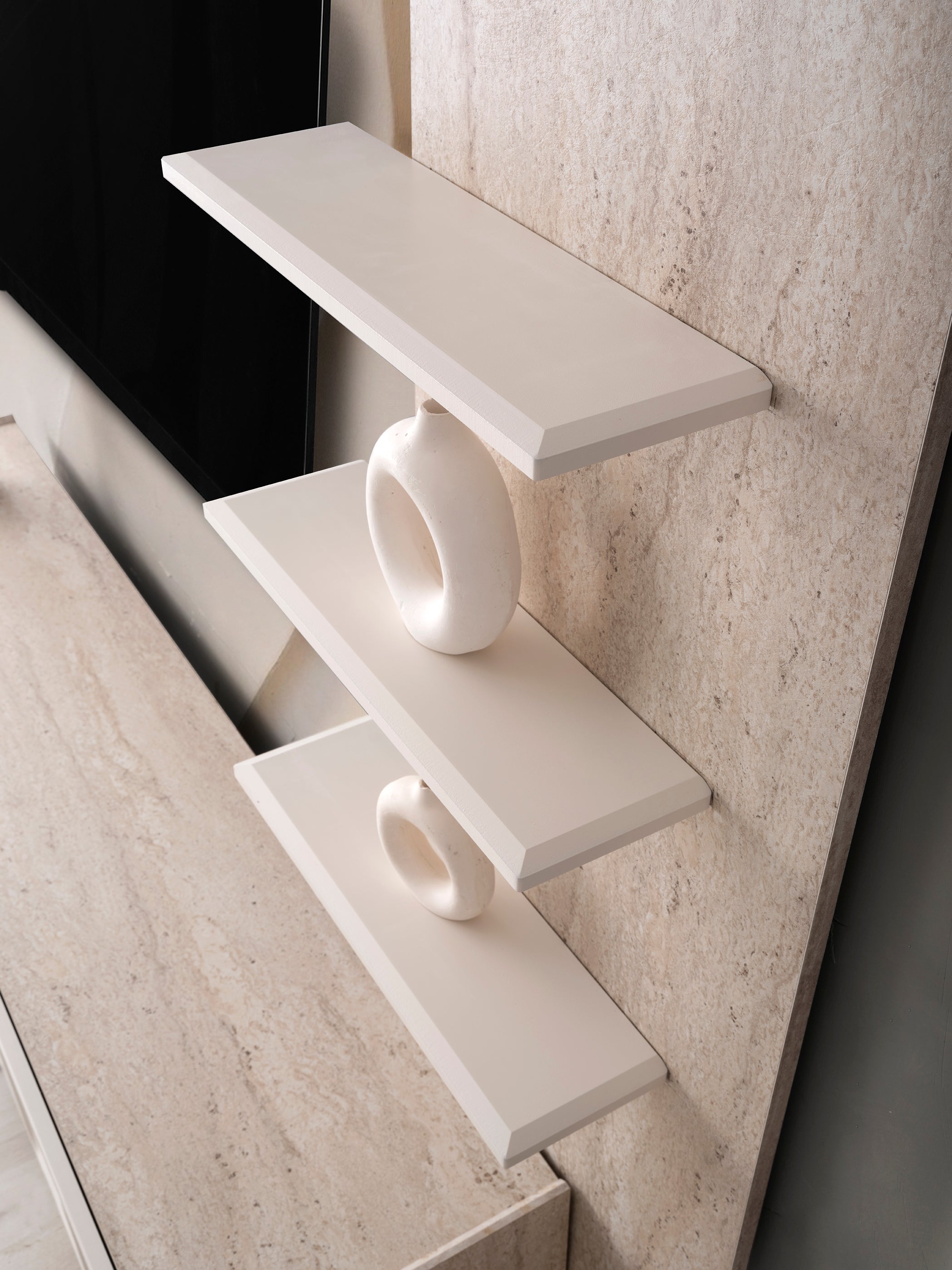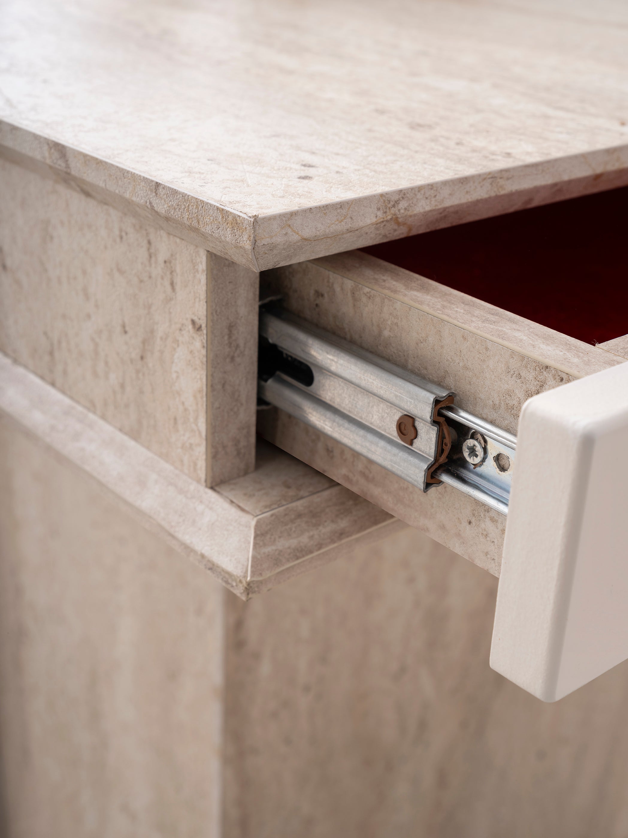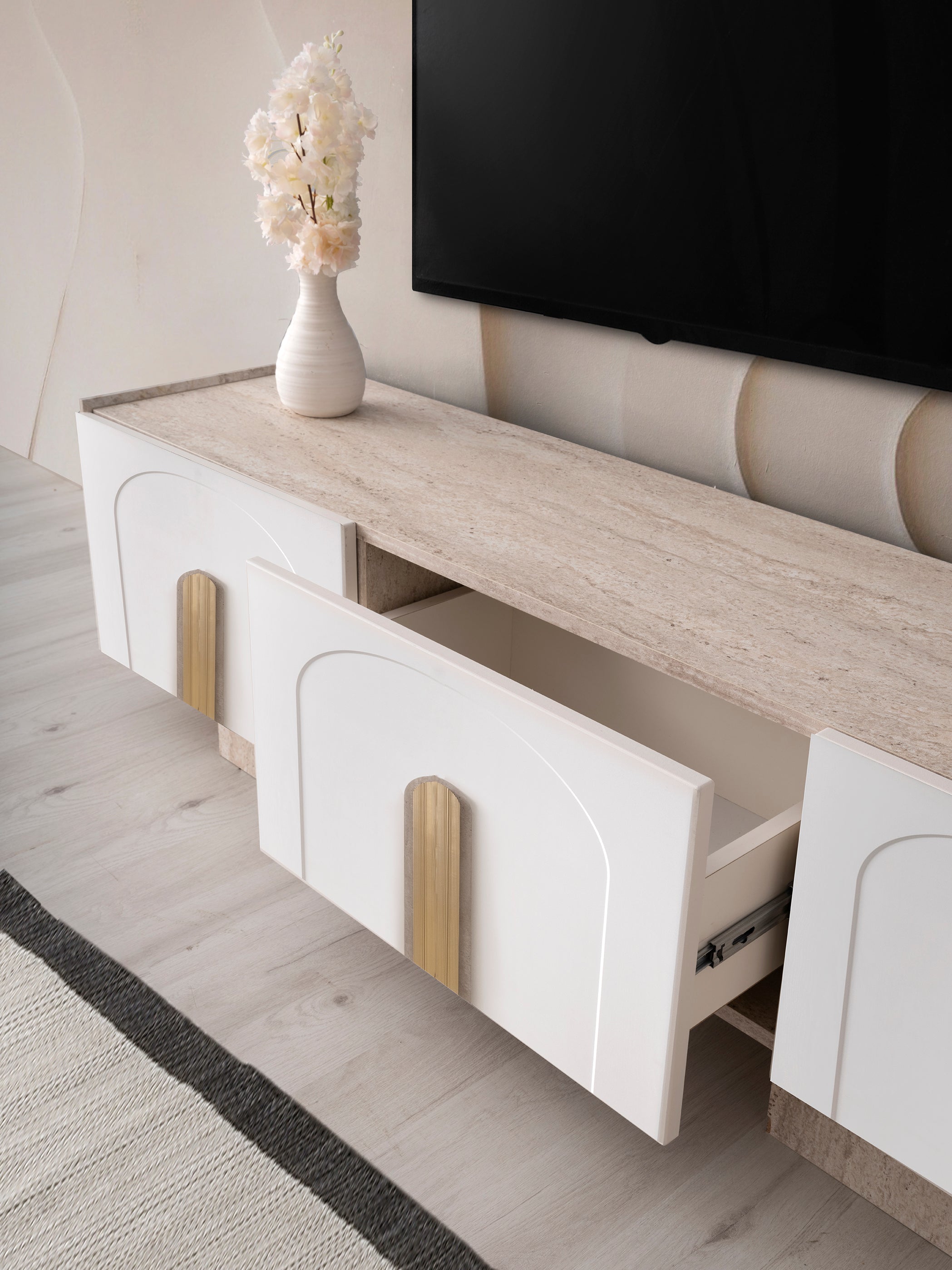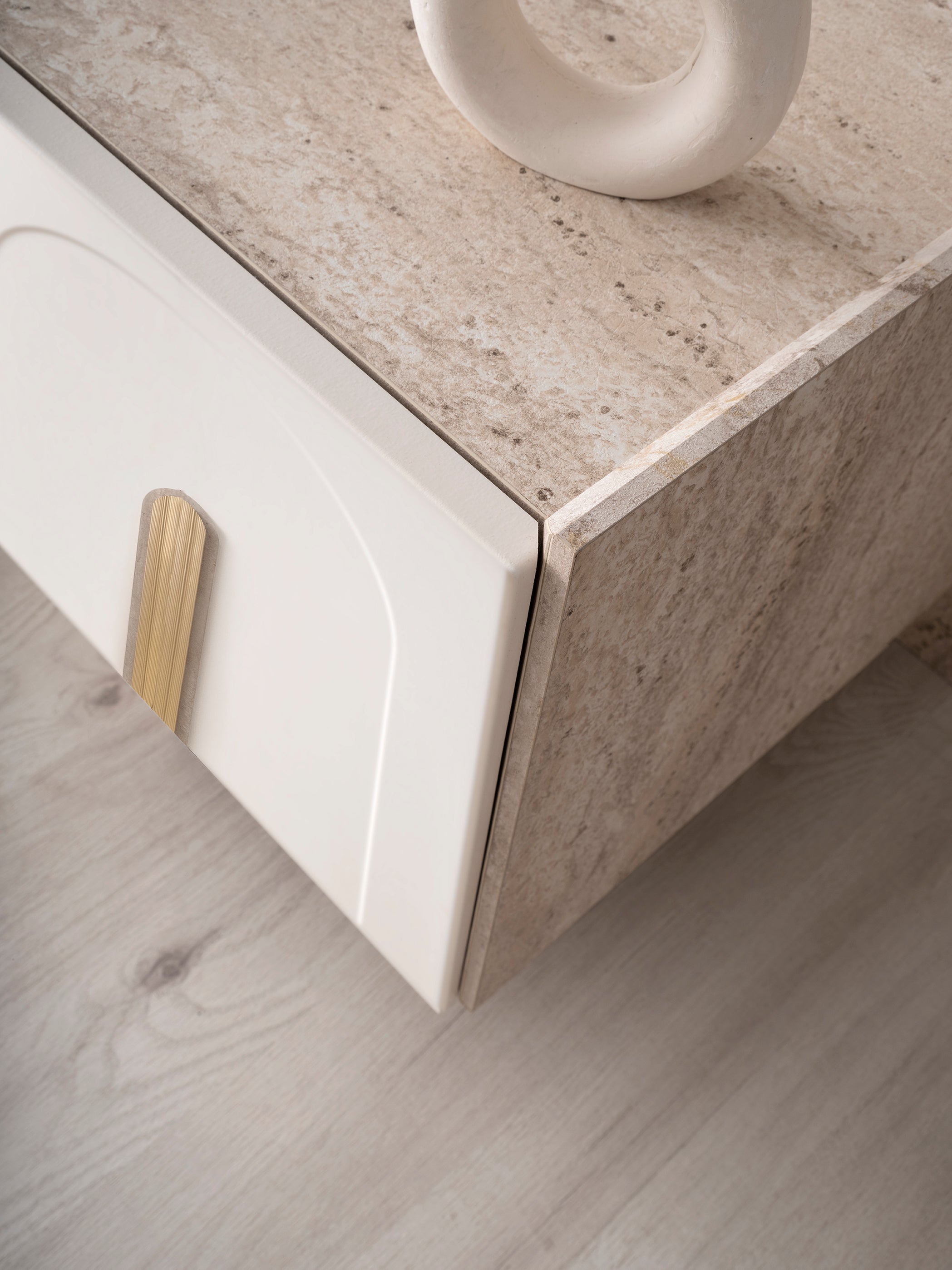Материал: МДФ с луксозно покритие "Травертин", метални акценти