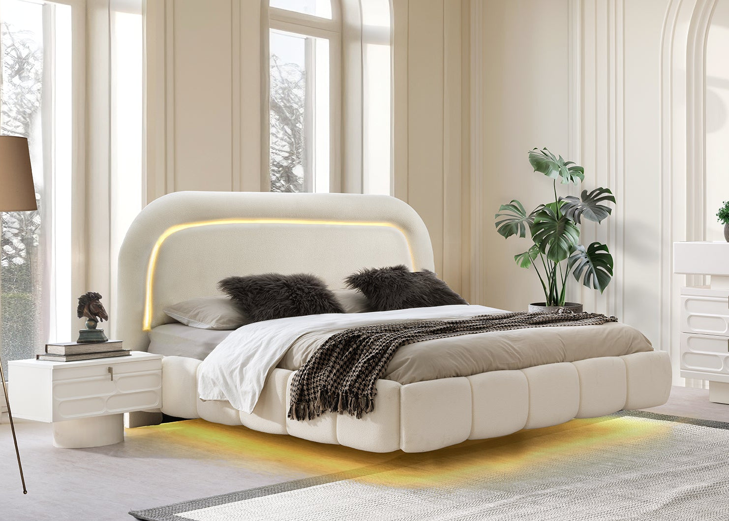Луксозна табла с тапицирани детайли и вградена LED лента.