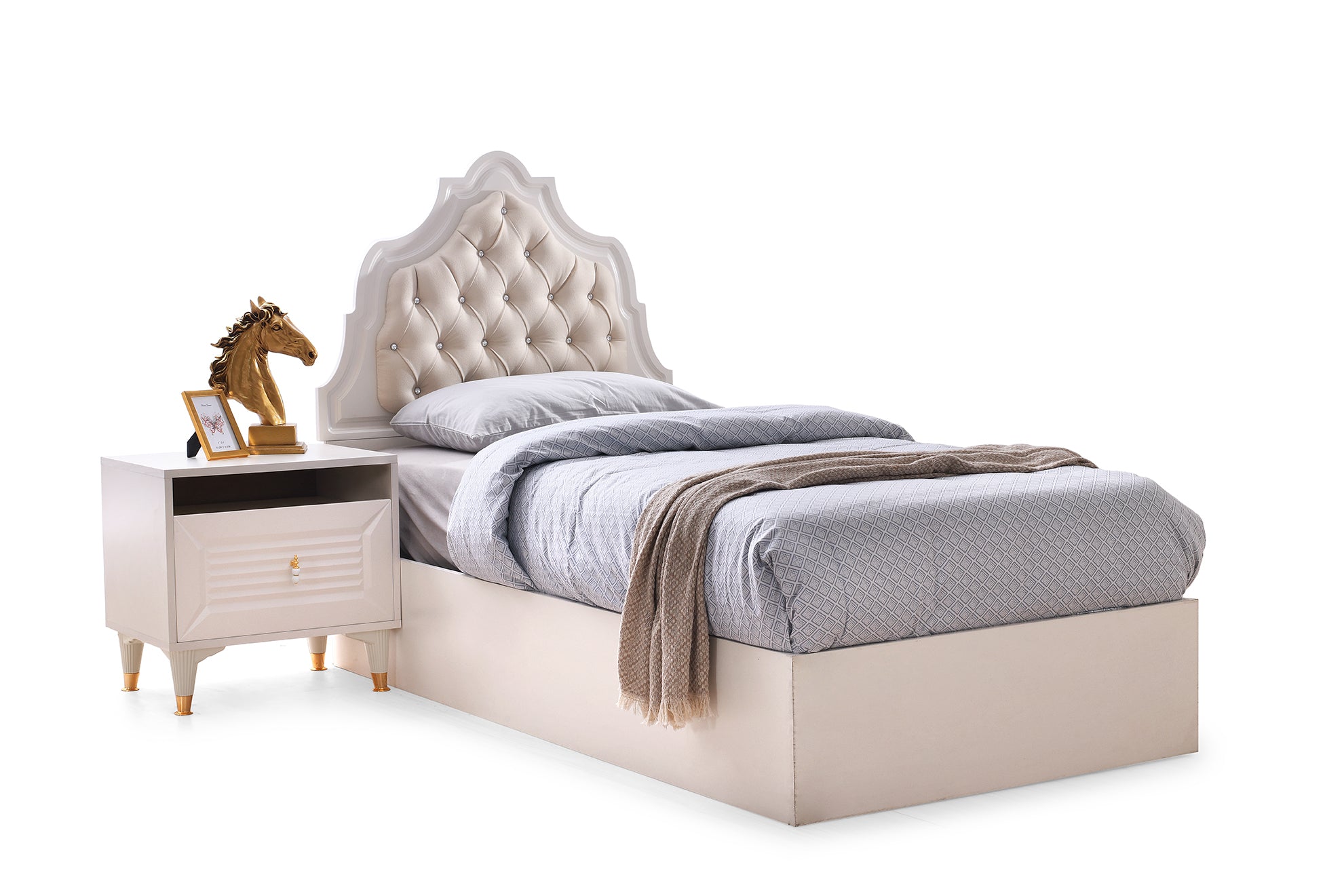 Създайте пространство, изпълнено със спокойствие и нежна хармония с младежки комплект "Аура". Неговият нежен кремав цвят, съчетан с елегантната рифелова текстура и фините златни детайли, създава атмосфера на изтънчен стил и уют. Меката тапицирана табла на леглото приканва към почивка, а функционалното бюро осигурява перфектното място за вдъхновение и учене. "Аура" е идеалният избор за създаване на лично убежище, където всеки млад човек може да мечтае и да се развива.