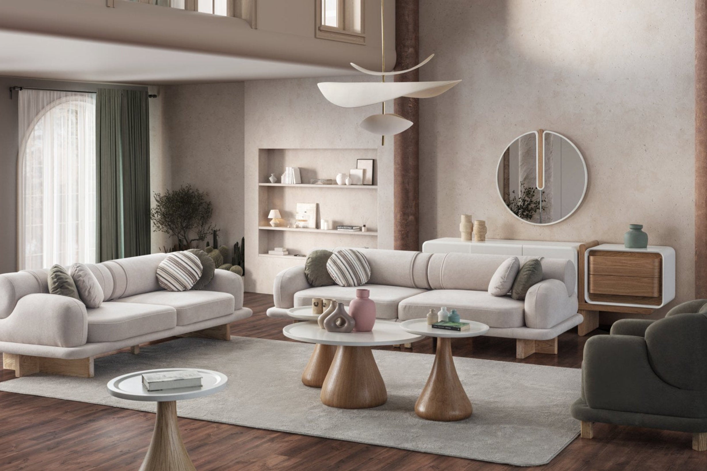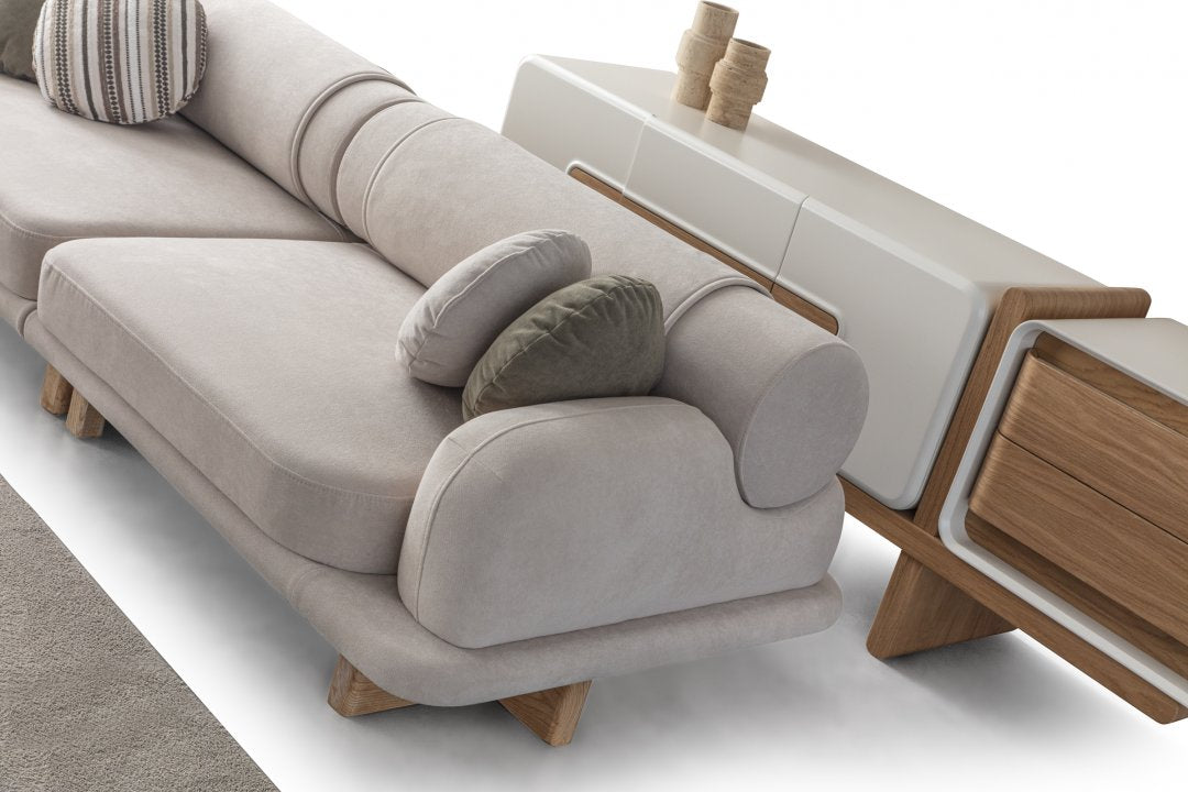 Вдъхновен от меките извивки и спокойствието на луната, комплект мека мебел "Луна" се отличава със своя уникален, скулптурен силует. Неговите заоблени форми и нисък профил създават модерна и артистична атмосфера, превръщайки всекидневната ви в галерия на съвременния дизайн. Меката дамаска тип "букле" и дълбоките седалки ви канят да се отпуснете и да се насладите на несравним комфорт. "Луна" е повече от диван – той е централен елемент, който ще донесе характер и уют във вашия дом.