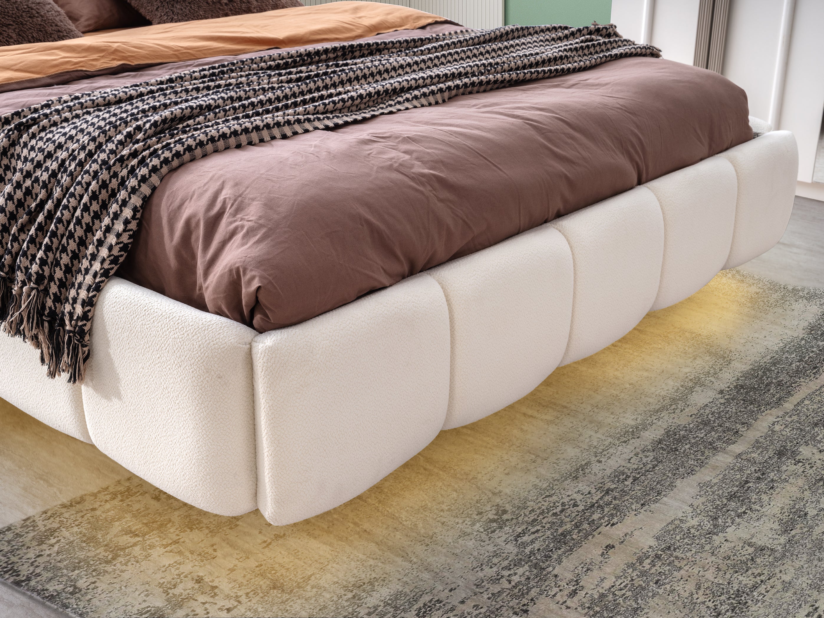 Акцент: Леглото е проектирано с модерна, твърда и фиксирана основа (без механизъм и без подматрачна рамка). Този изчистен дизайн не само осигурява максимална стабилност, но и придава на спалнята по-елегантна и съвременна визия, като запазва перфектната форма на вашия матрак.