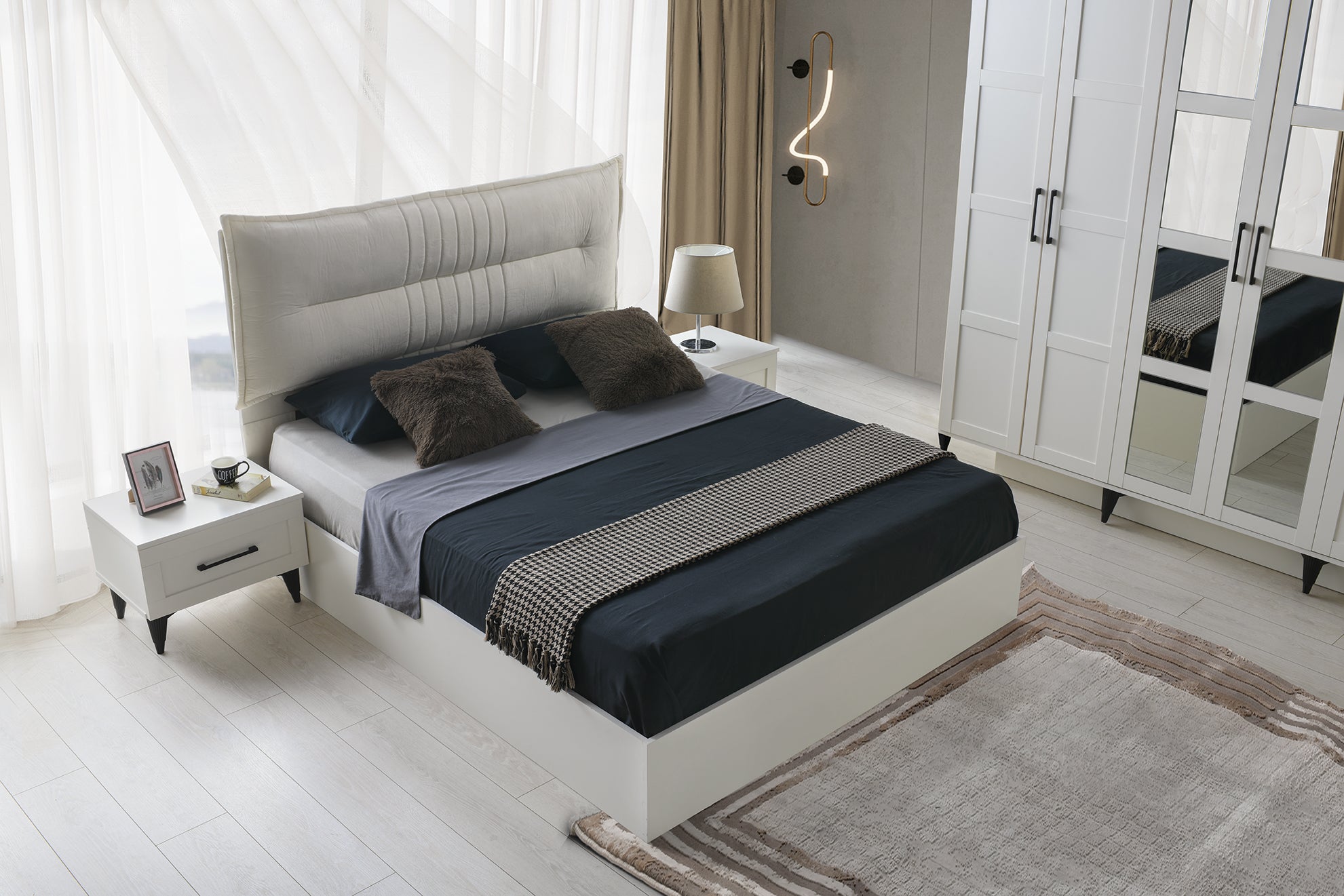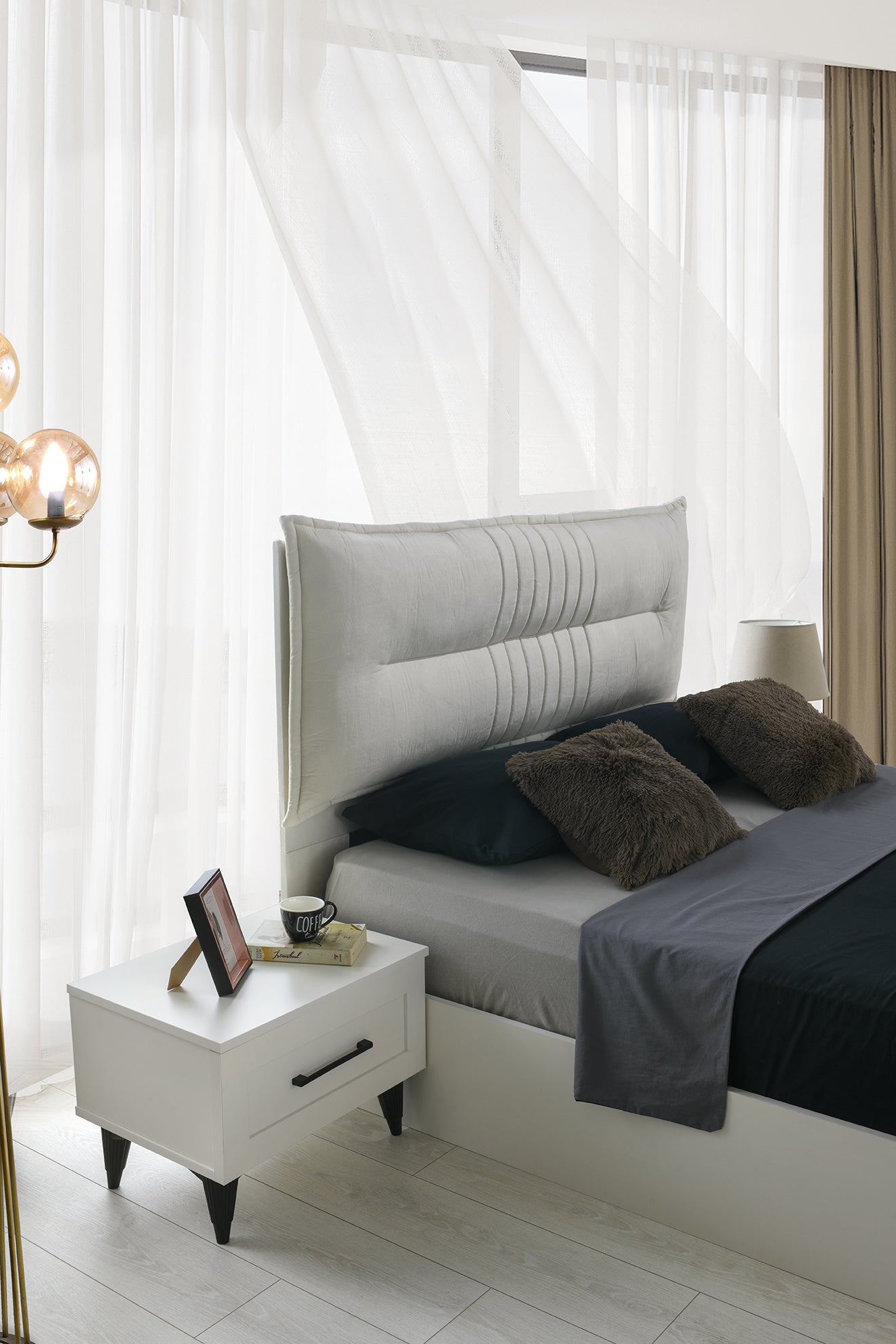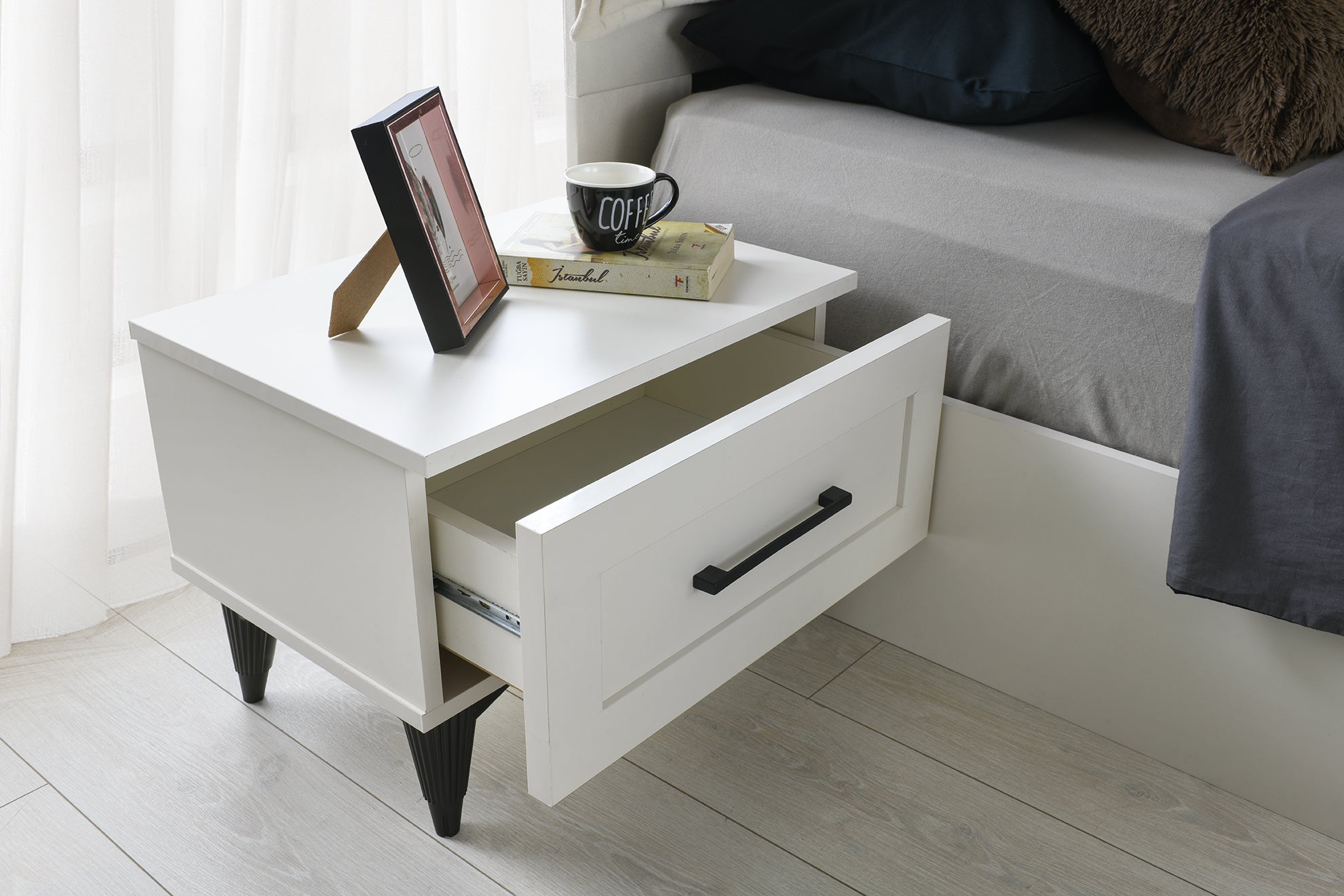 Нощни шкафчета Бикс: Нощни шкафчета с чекмеджета, допълващи стилния дизайн на комплекта.