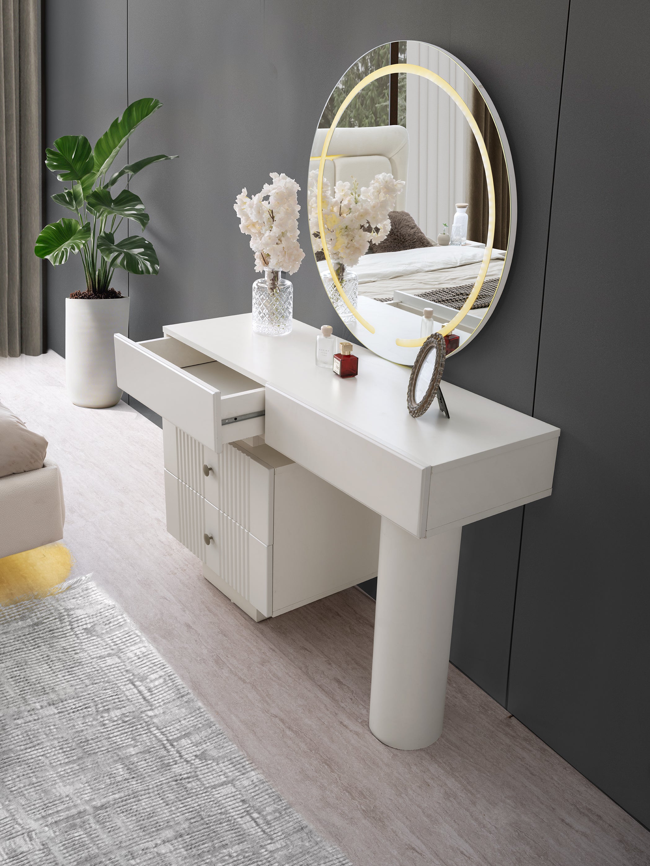 Комплектът включва: Гардероб, Легло, Табла, Скрин (Тоалетка) и 2 бр. Нощни шкафчета.