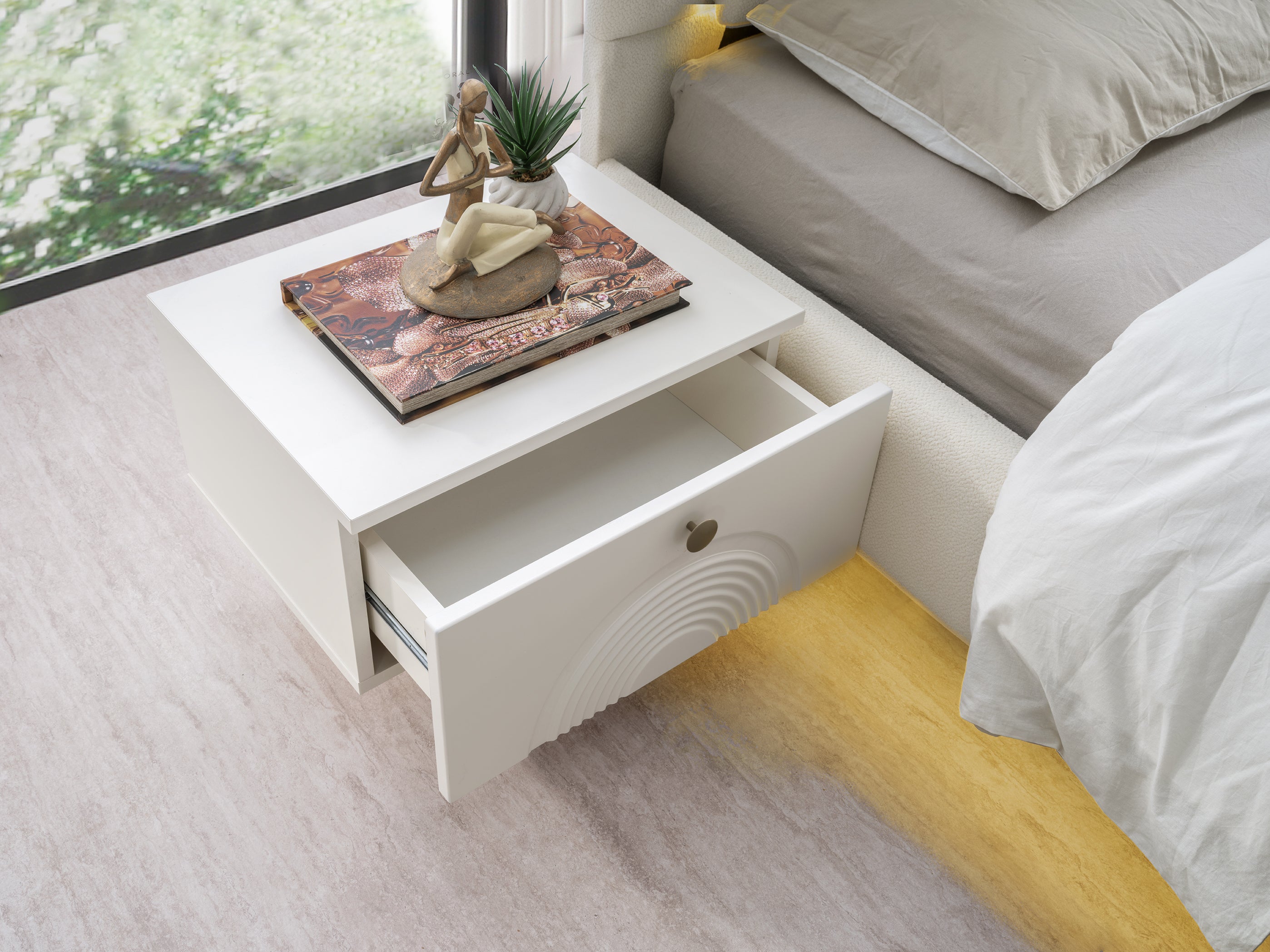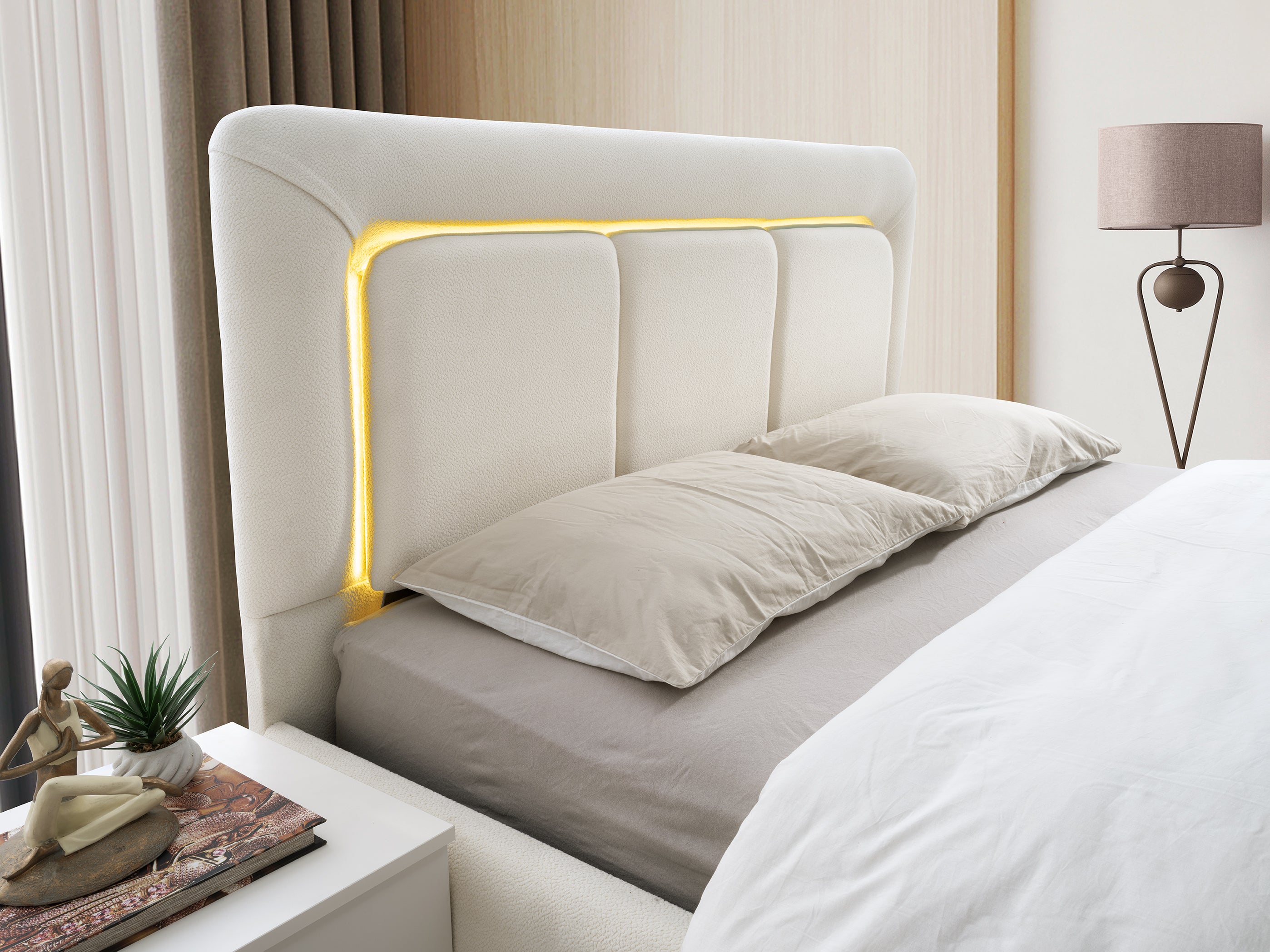 Леглото е проектирано с модерна, твърда и фиксирана основа (без механизъм и без подматрачна рамка). Този изчистен дизайн не само осигурява максимална стабилност, но и придава на спалнята по-елегантна и съвременна визия, като запазва перфектната форма на вашия матрак.