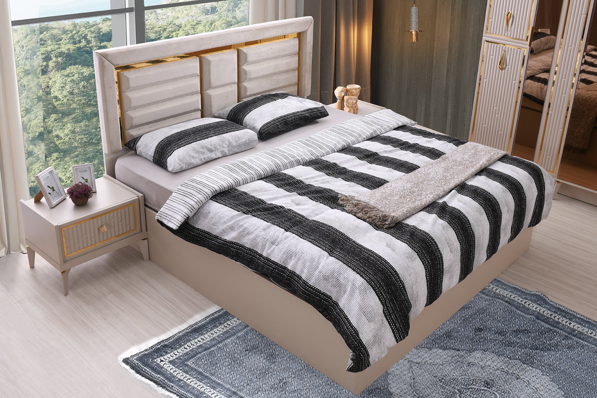 Луксозна табла: Високата табла на леглото е с уникален, класически релефен дизайн, който придава усещане за разкош и комфорт.