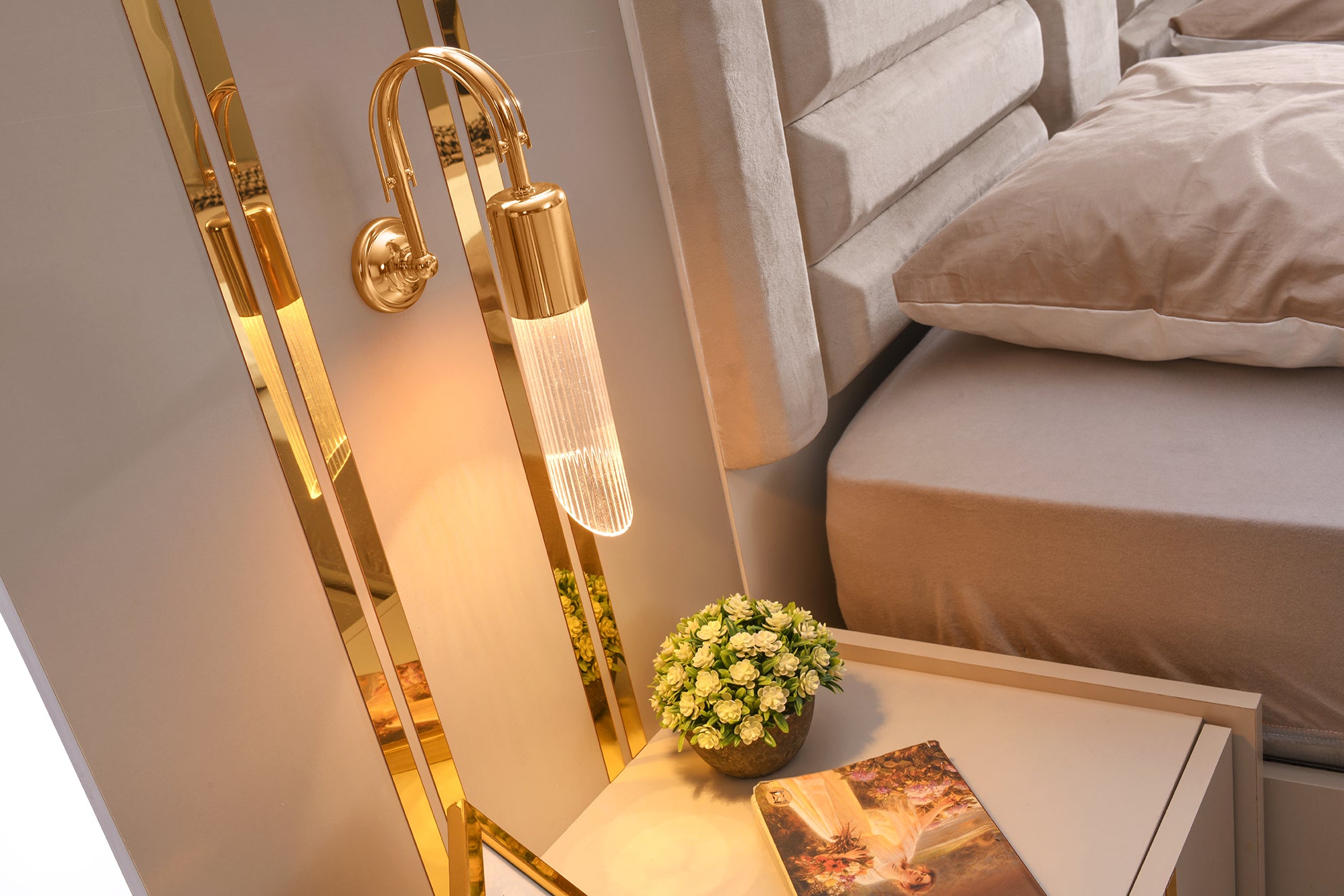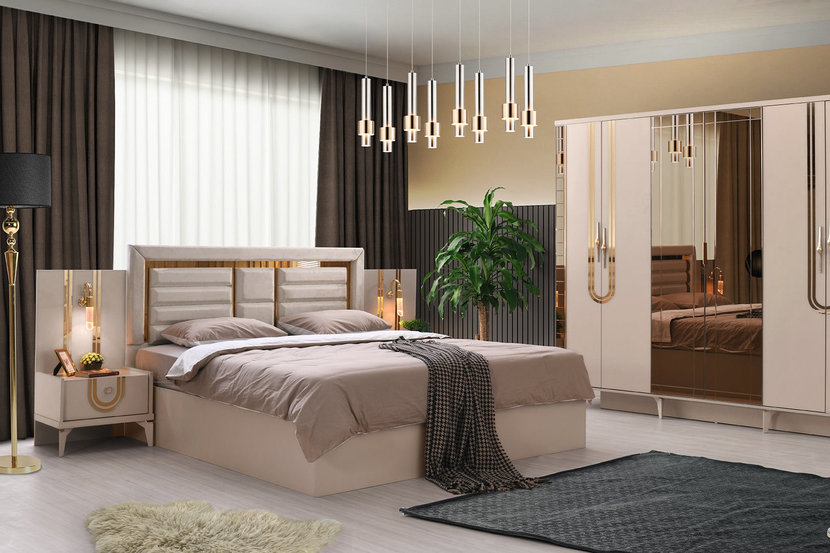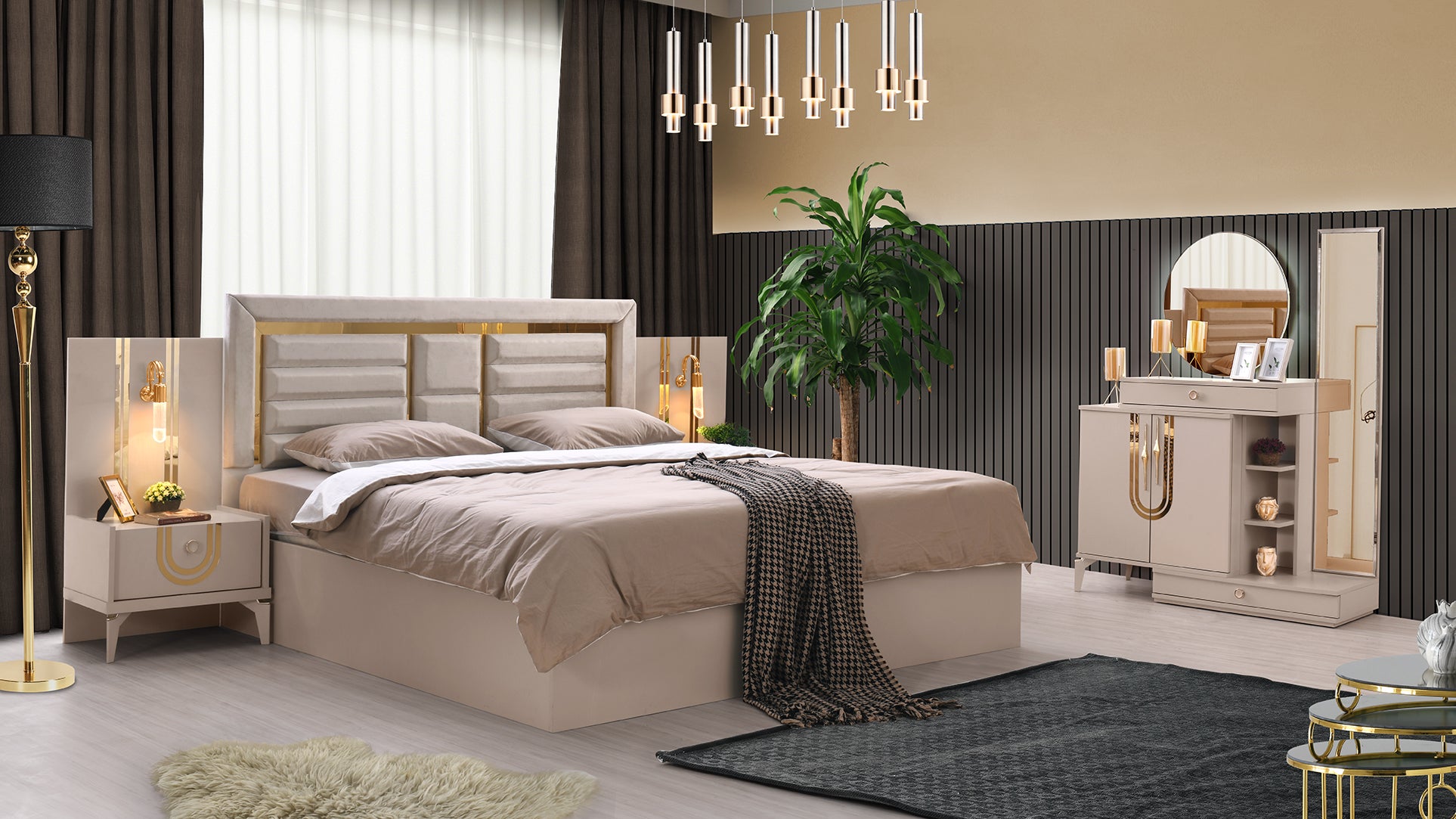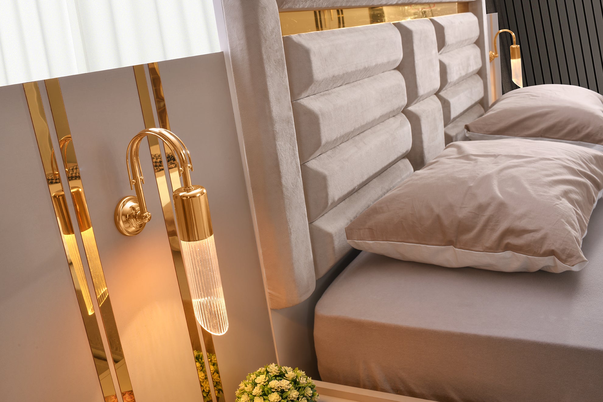 Нощни шкафчета: Практичните нощни шкафчета с чекмеджета допълват стилния дизайн и предлагат удобно място за съхранение до леглото.