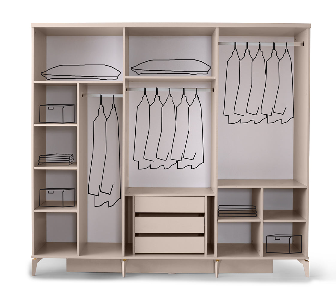 Гардероб Сафир: Голям гардероб с гланцирани врати и огледални панели.
