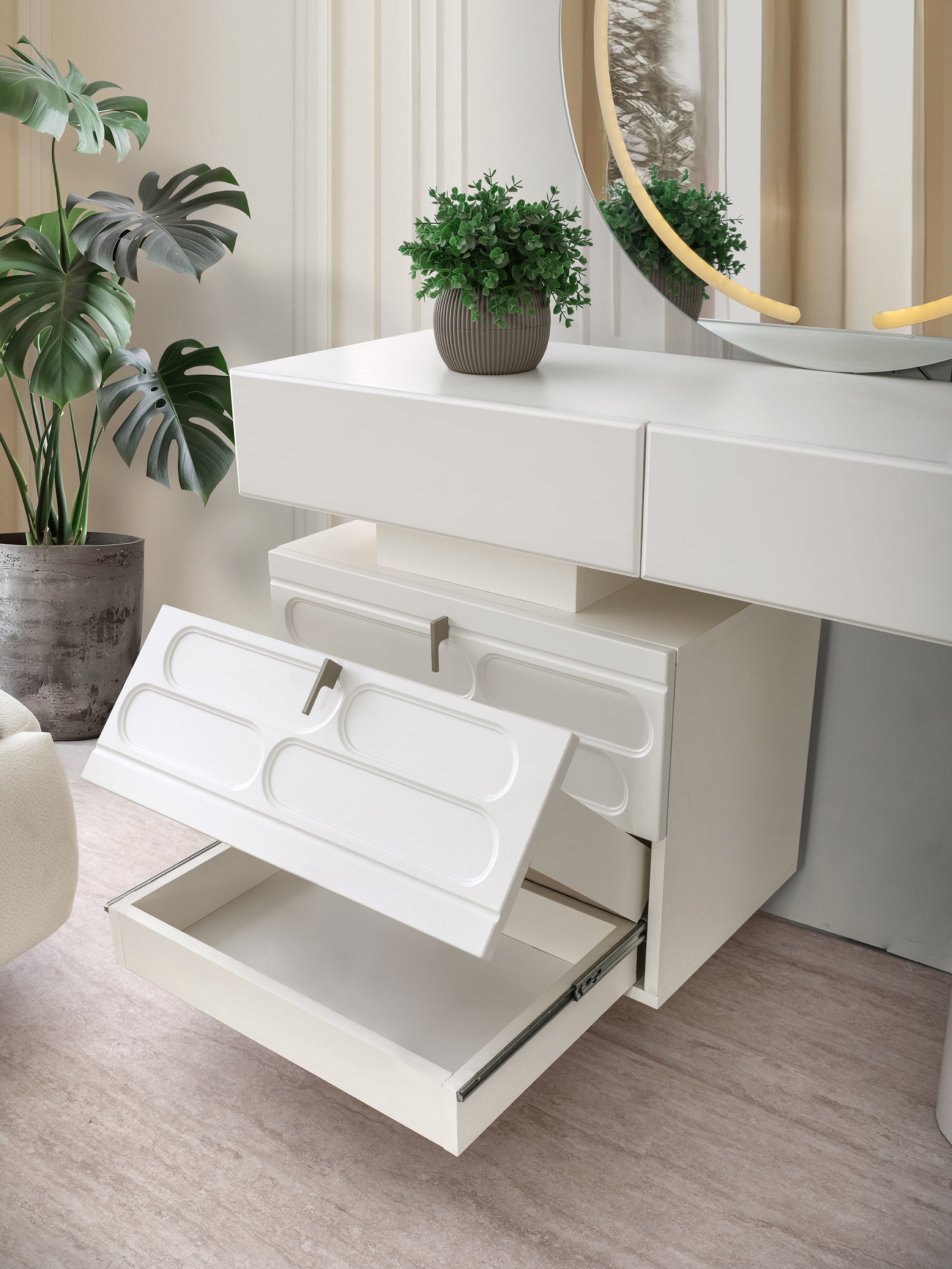 Материал: Целият комплект е изработен от висококачествено MDF (МДФ), което гарантира отлична здравина, стабилност и луксозен завършек.