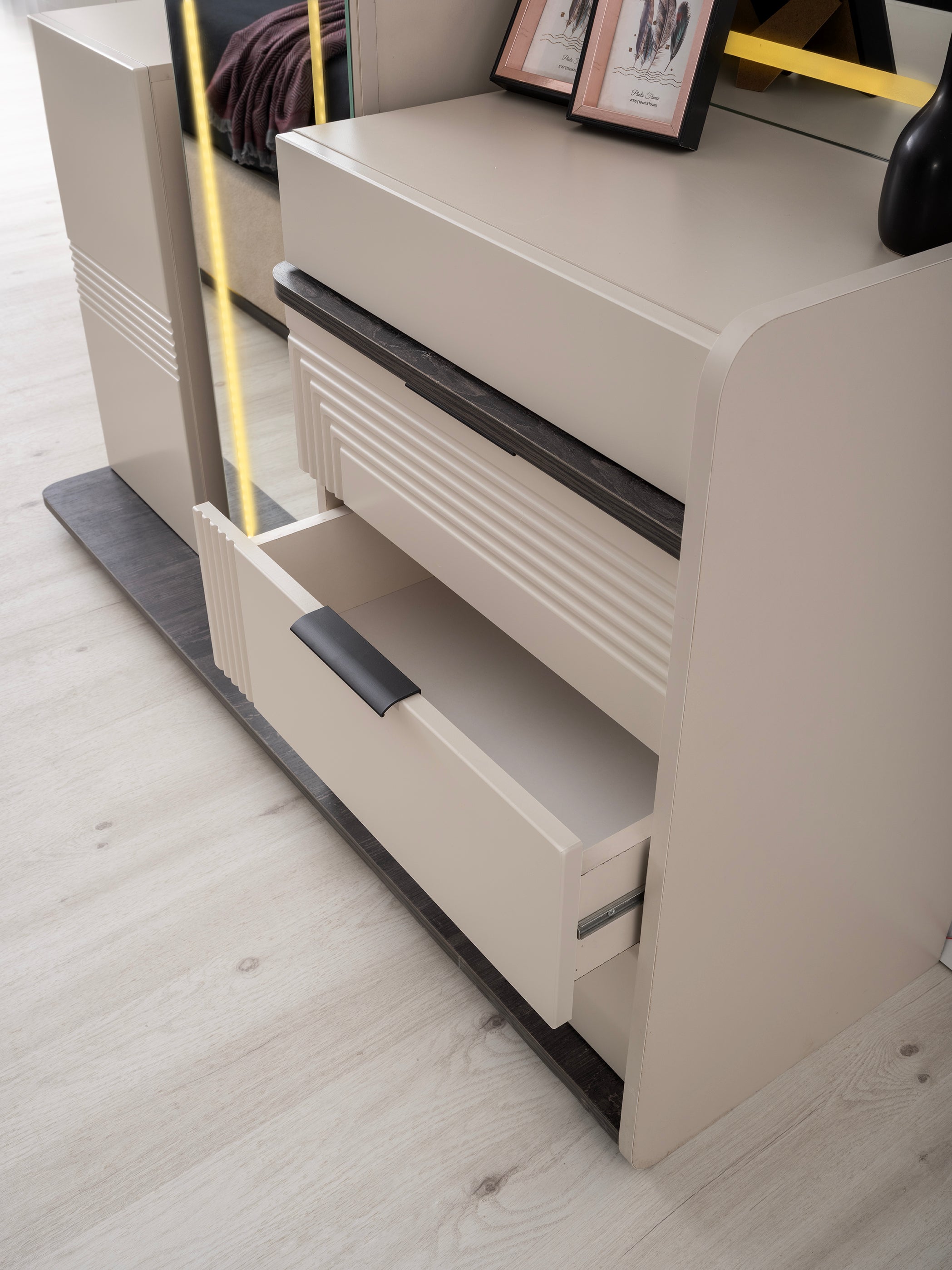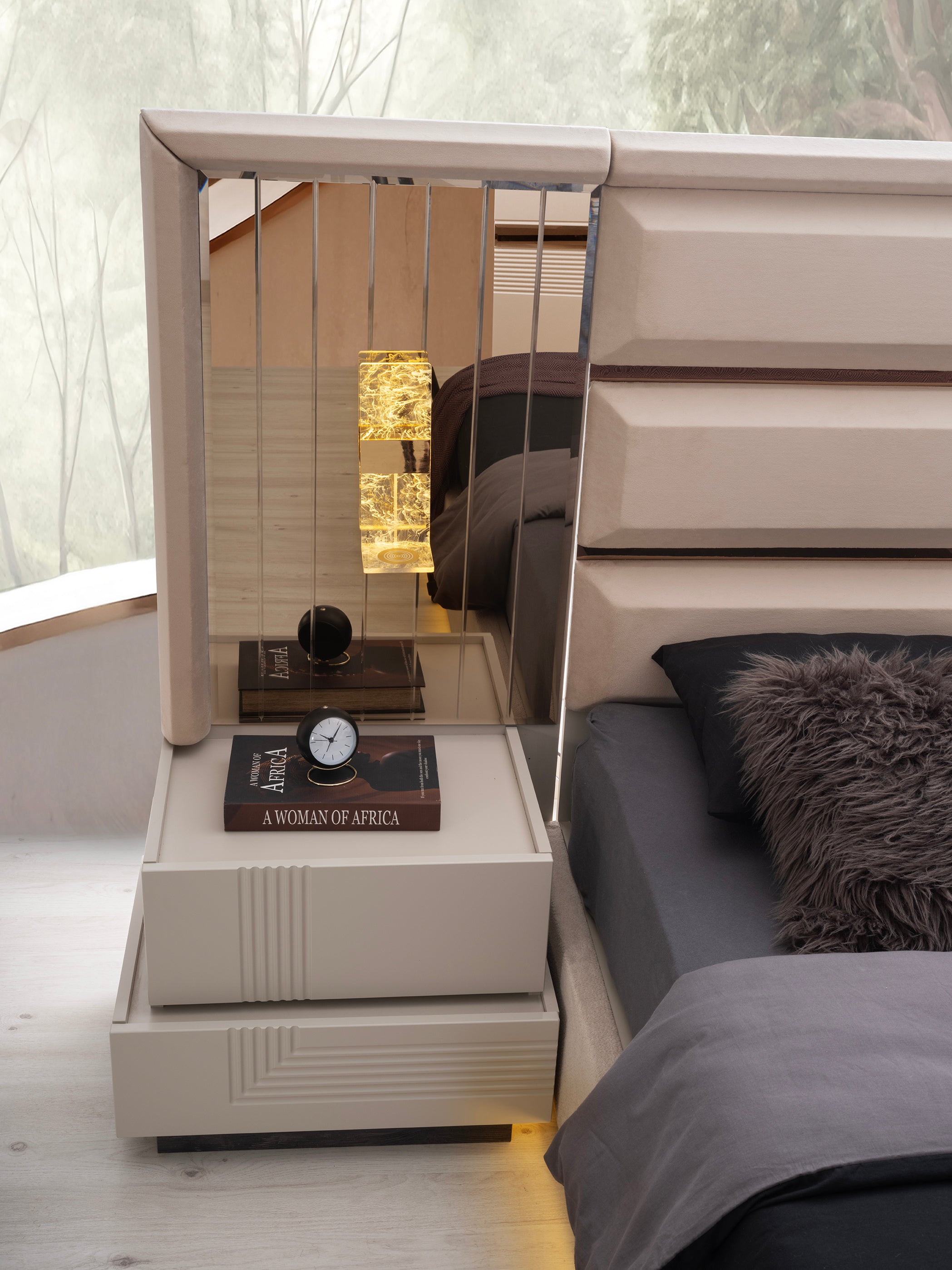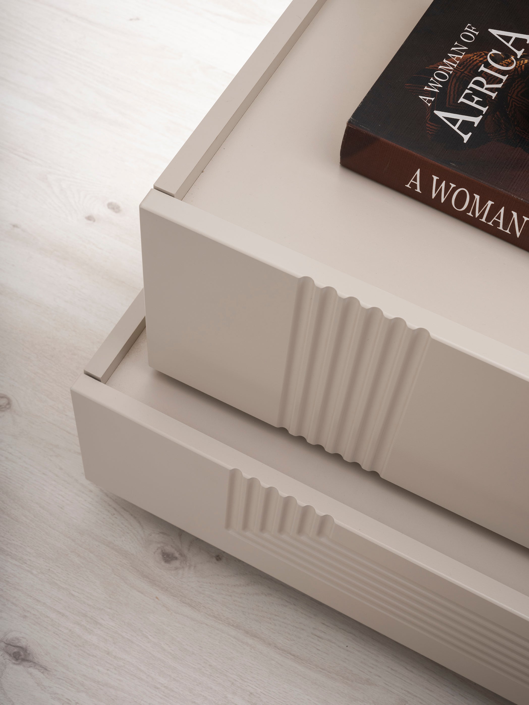 Нощни шкафчета с по две чекмеджета. Горното чекмедже е с релефна текстура.