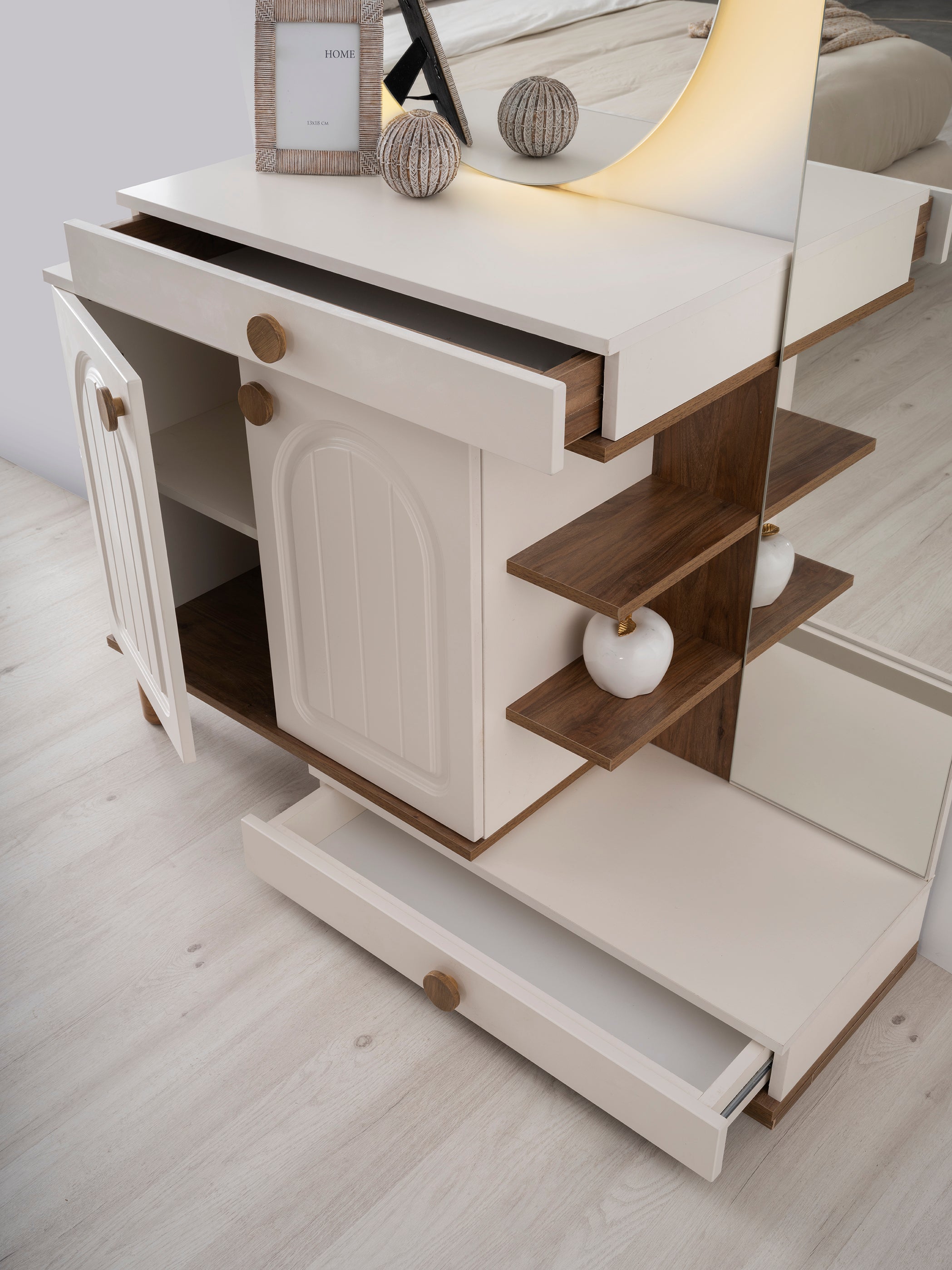 o Маса с чекмеджета и голямо отделно огледало с декоративна рамка.