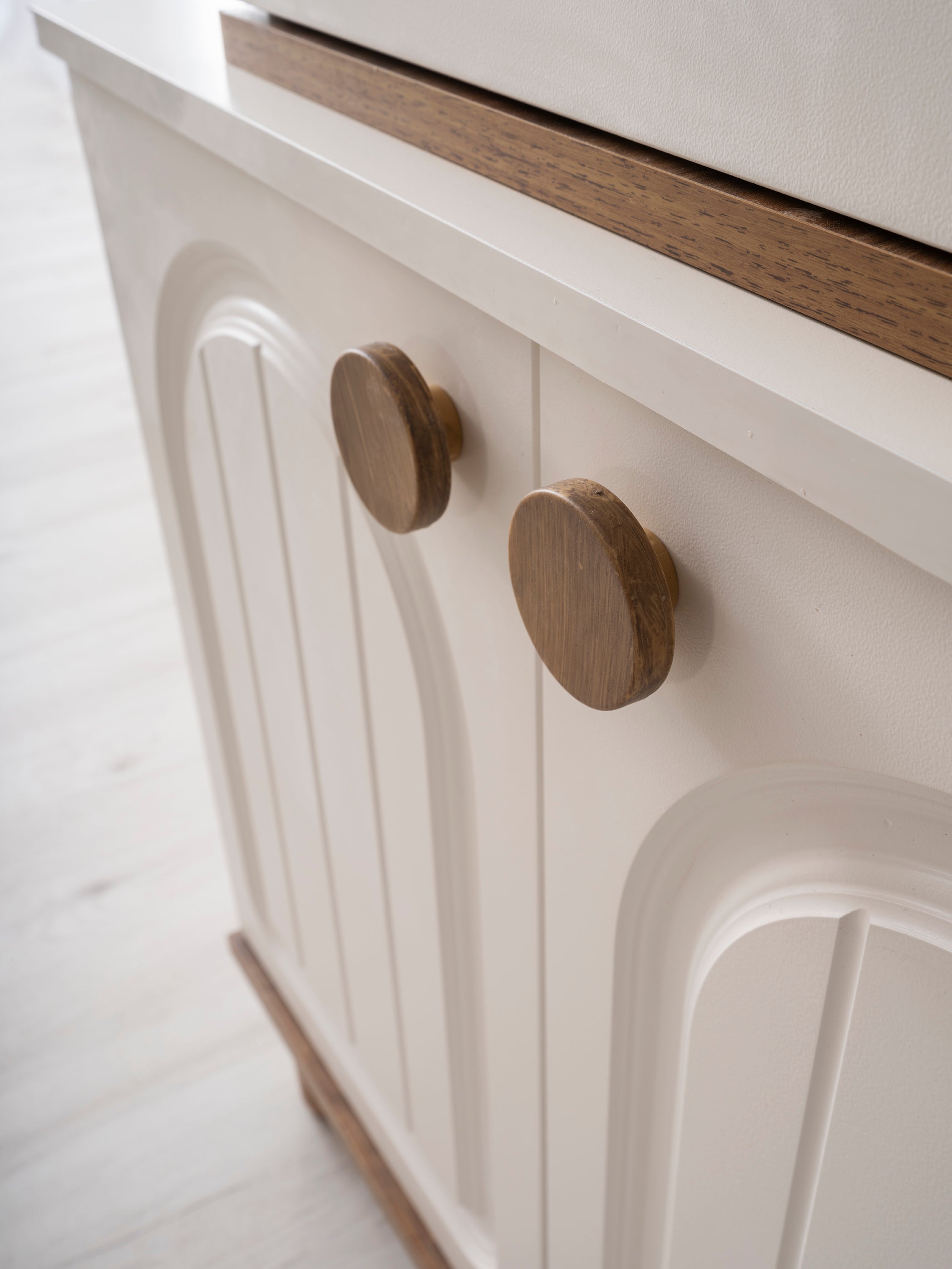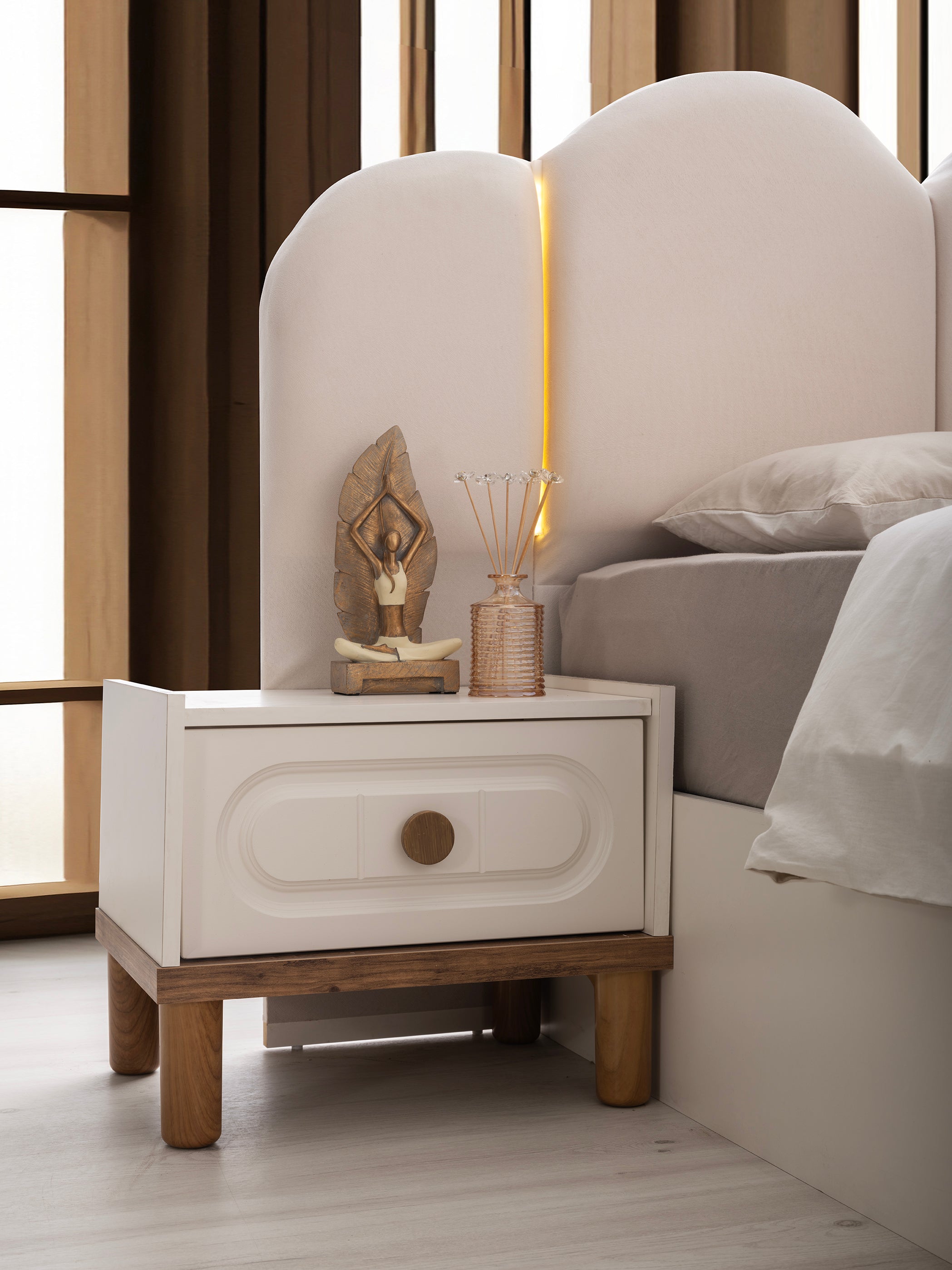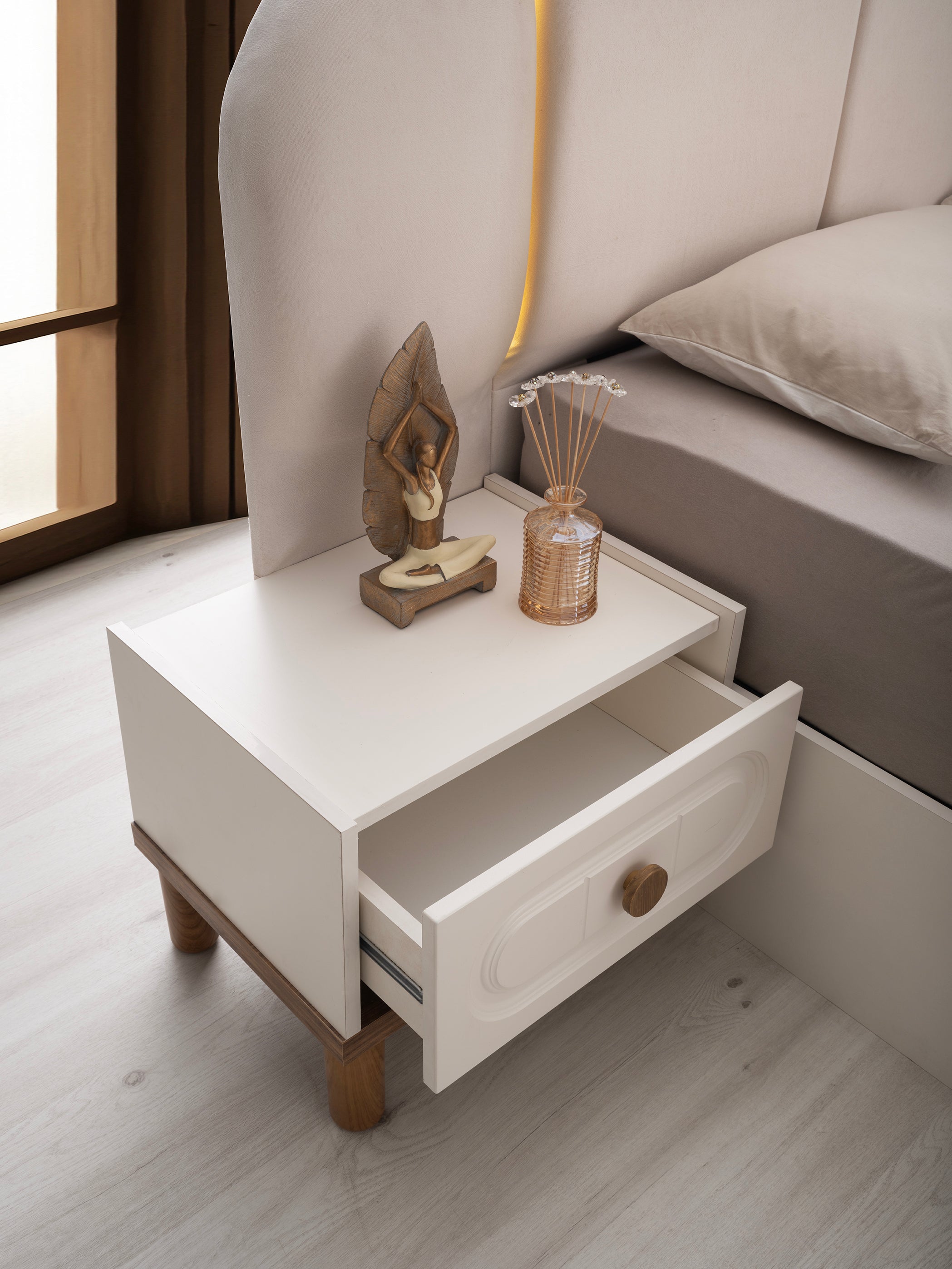 o Високи нощни шкафчета с чекмеджета и декоративни лайсни.