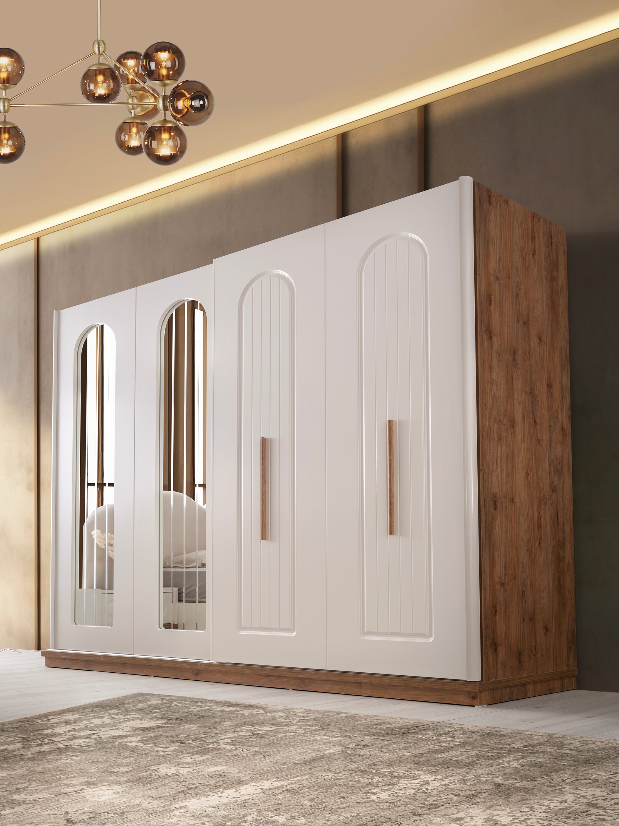 o Голям гардероб с огледални централни врати. Страничните врати са с декоративни лайсни.